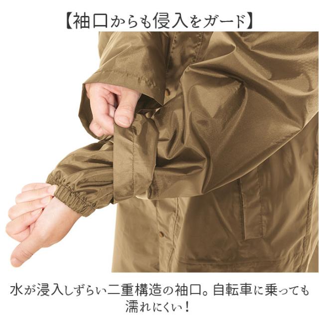 | 商品説明 | 【雨の日の自転車通勤・通学に】 ・リュック対応が嬉しい、サイクルレインコートが新発売♪ 【リュックの上から着用できる】 ・リュックの上から着用できるバックプリーツタイプ。リュックがない時はスマートなシルエット 【自転車が漕ぎやすい裾三角マチ】 ・雨が浸入しにくく、広めのマチで自転車が漕ぎやすい裾三角マチ構造。 【すっきり収納できる裾三角マチ】 ・歩行時はサイドのスナップボタンで裾三角マチの収納が可能。 【ヘルメットもかぶれるフード】 ・後の面ファスナーでサイズの調節が可能!ヘルメットを被ったままフードの装着ができるのも◎ 【袖口からも侵入をガード】 ・水が浸入しずらい二重構造の袖口。自転車に乗っても濡れにくい! 【水に強い雨の日の味方】 ・表面に撥水加工、裏面にはシームテープ処理を施し、耐水圧10000mm/H2O機能。 【蒸れにくい作り】 ・雨水は通さず、湿気は逃がすので梅雨や夏でも蒸れにくい◎透湿度5000g/m2-24H機能。 【視認性UP!反射プリント】 ・右袖には視認性を高める反射プリント付き。薄暗い雨の日も安心。 【べたつかないメッシュ袖】 ・袖の裏地にはメッシュ生地を使用。半袖を着ている時でも生地が貼り付かずべたつかない♪ 【フードの収納OK】 ・フードを内側に丸めてコードで留めれば、フードがいらないときは収納できる仕様。 【専用の収納袋付き】 ・コンパクトに収納できる専用の収納袋付き。 |