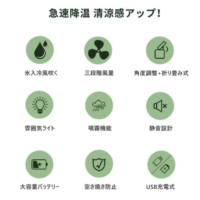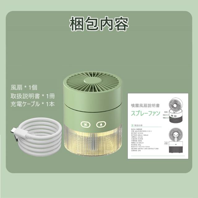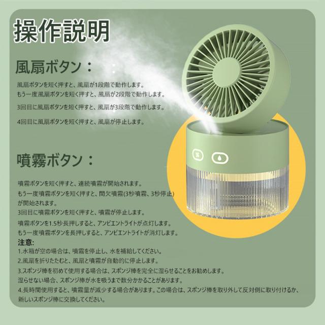卓上扇風機 加湿器 ファン 噴霧機能 小型 静音 ミスト 噴霧ファン おしゃれ 冷風 氷入れ 涼しい 冷風扇 角度調整可能 三段階風量 USB充電 室内 寝室 オフィス 日本語説明書付き