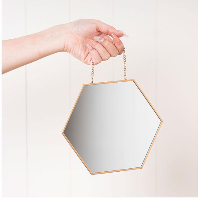 六角形 鏡 通販 六角 ミラー かがみ 壁掛け鏡 アンティークミラー 壁掛けミラー ウォールミラー 壁掛け チェーン 卓上ミラー 卓上鏡 化粧鏡 メイク 化粧 玄関 リビング バスルーム