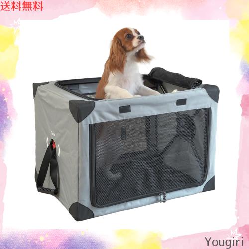 ◆商品名:シンセーインターナショナル ペットキャリー 犬 猫 キャリー 折りたたみケージ ペットクレート Mサイズ グレー