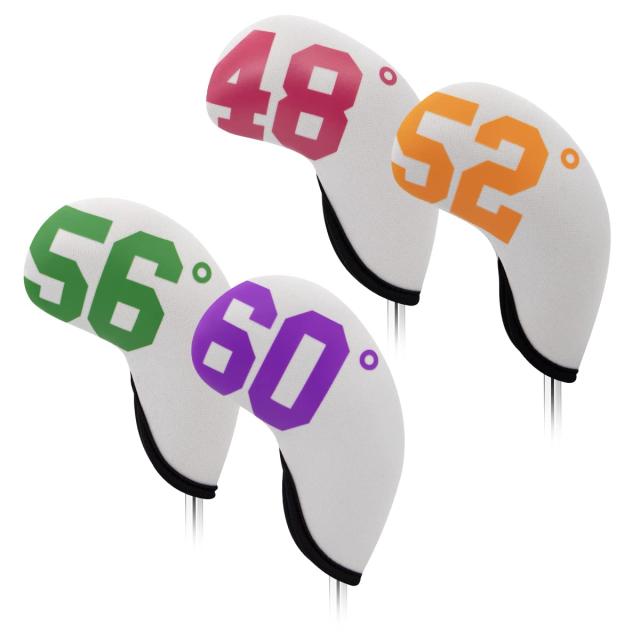 ゴルフアイアンカバー ウェッジカバー ゴルフヘッドカバー アイアン/ウェッジ用 4枚セット おしゃれ デザイン カラフル番手付き インパクト 伸縮性ネオプレン製 (48°,52°,56°,60°) ホワイト/ブラック 2色
