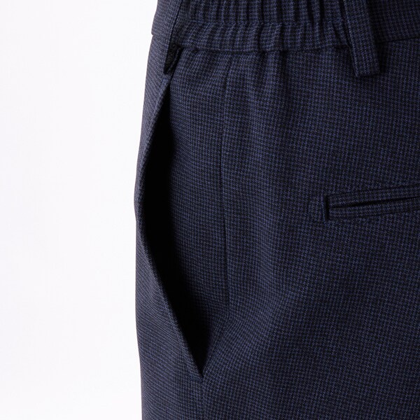 【ストレッチスーツ】ノータックパンツ ネイビー 千鳥格子 ※パンツ裾上げ済仕様