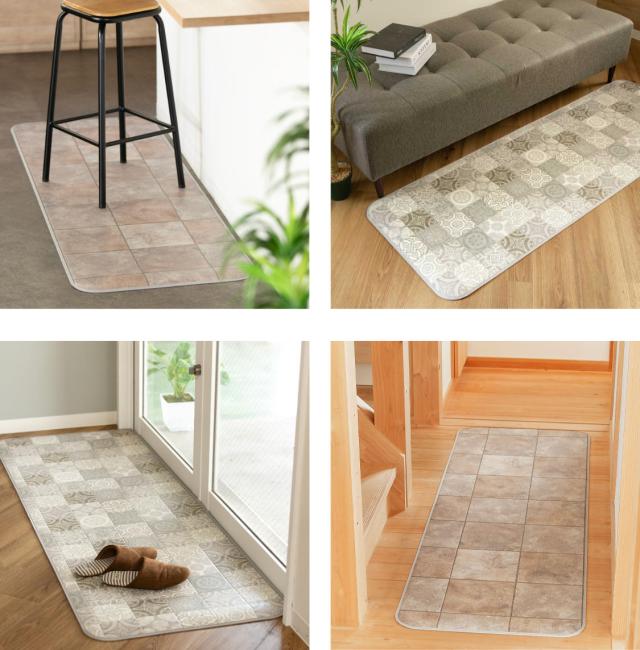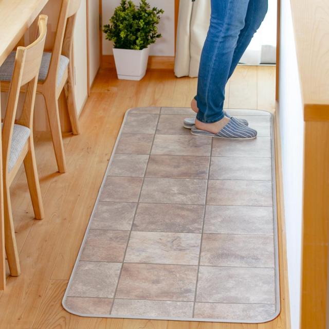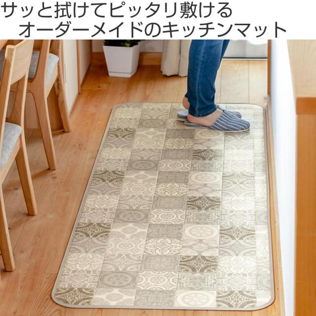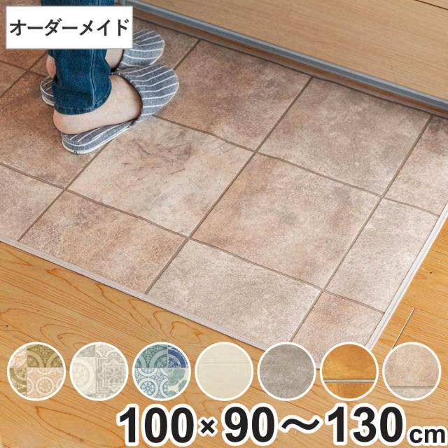 キッチンマット 2cm単位 オーダー 100×90〜130cm Sタイプ パターン タイル ( 日本製 オーダーキッチンマット 拭ける 撥水 抗菌 防カビ 耐摩耗 防炎 100cm サイズオーダー サイズ 台所マット 室内マット キッチン マット タイル調 )