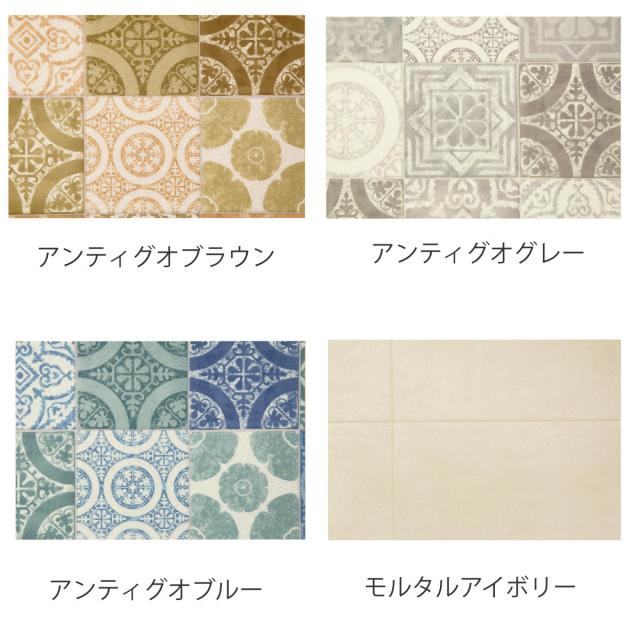 | 種類 | アンティグオブラウン、アンティグオグレー、アンティグオブルー、モルタルタイルアイボリー、モルタルタイルグレー、テラコッタオレンジ、セラミックタイルグレー |