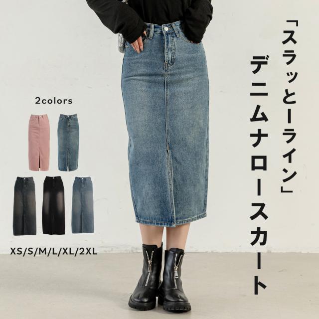 春新作 「8:2のバランスがよき」デニム スカート ナロースカート 膝下 ひざ下 ボトムス レディース 小さいサイズ ジーンズ ストレート Iライン フロントスリット ポケット 中厚手 ベーシック 普段使い デイリー オフィスカジュアル 通勤 OL 通学