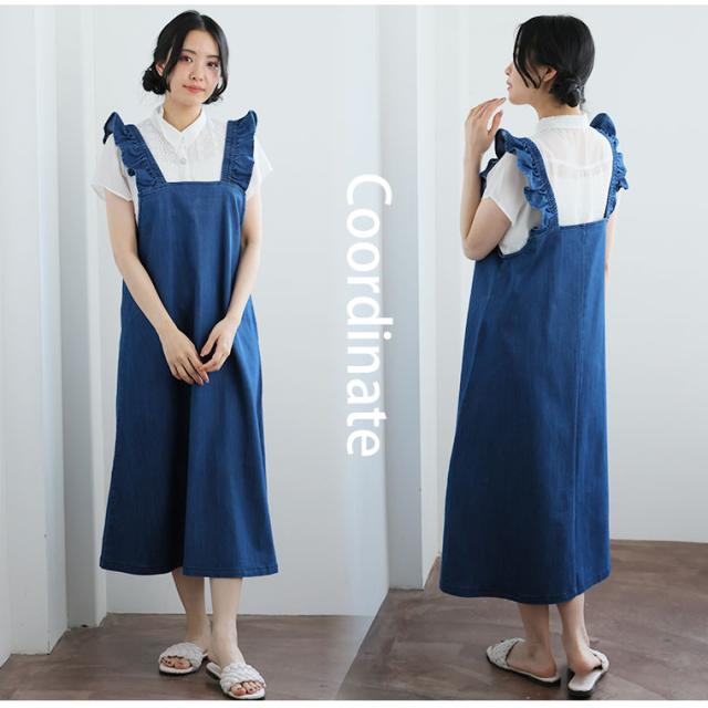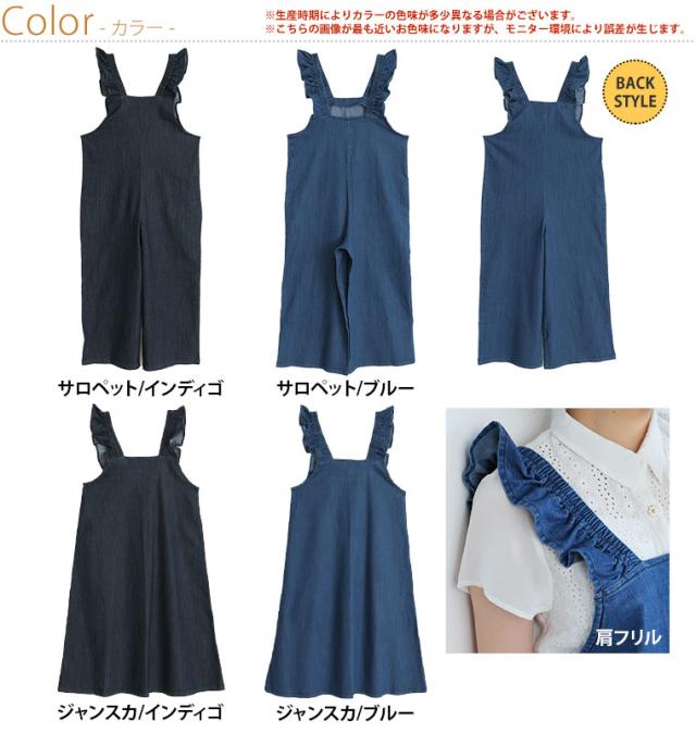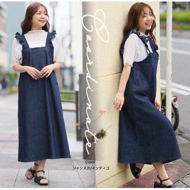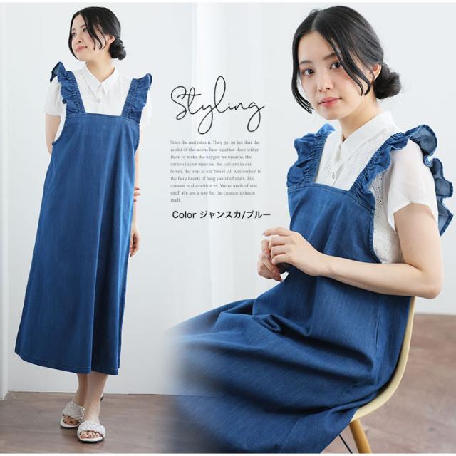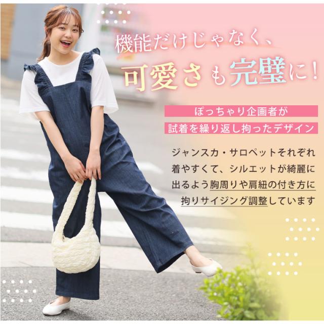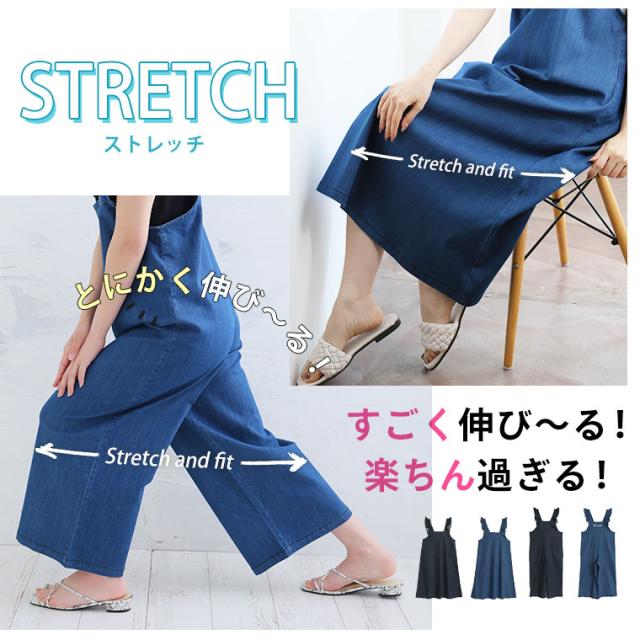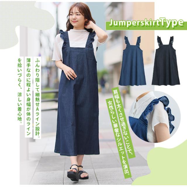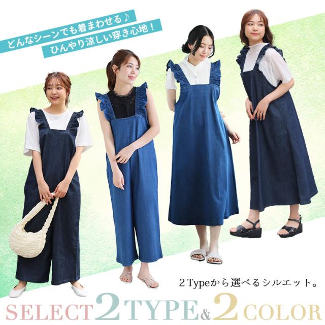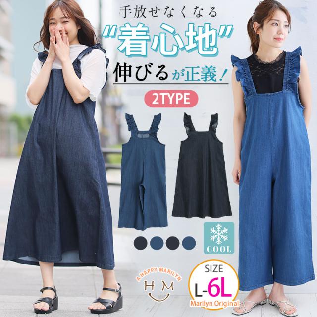 新作 大きいサイズ レディース パンツ | 伸びるが正義!! 「肩フリルジャンスカ・サロペット 〜ひんやりバージョン〜」 [448108] LL 3L 4L 5L 6L1