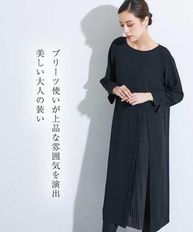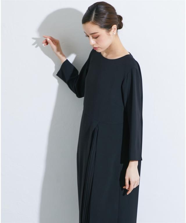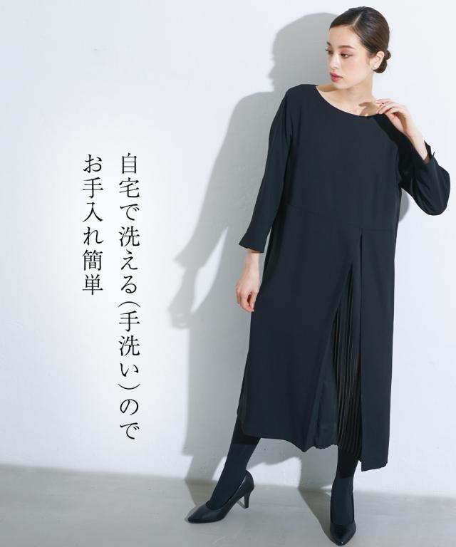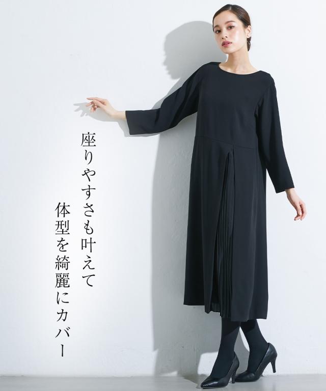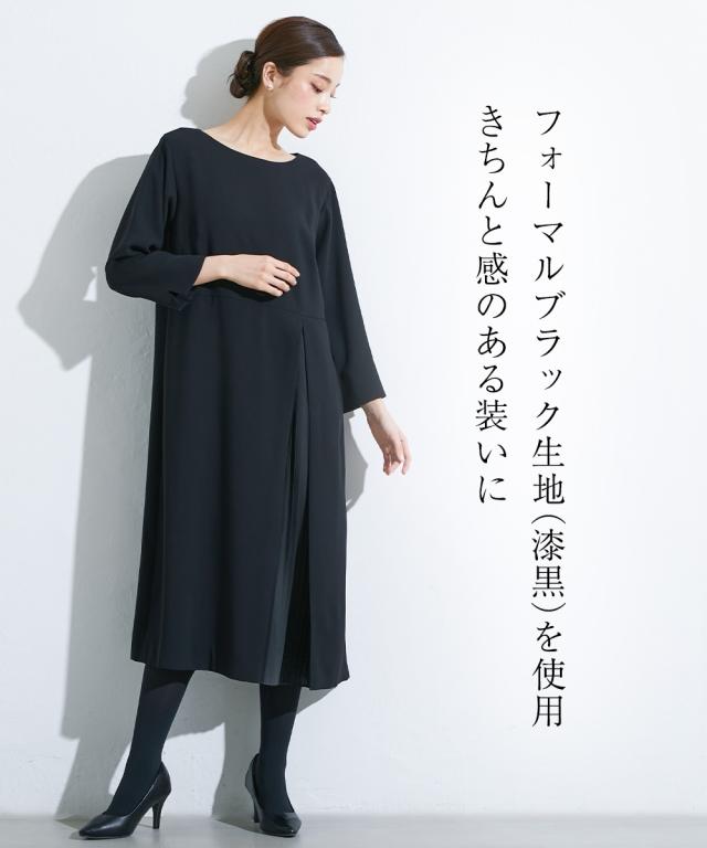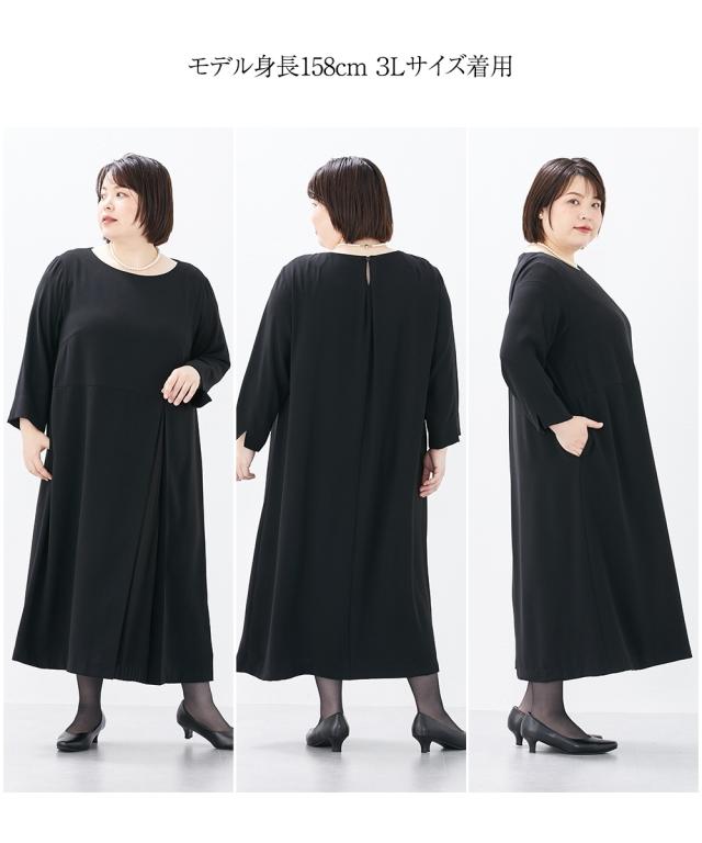 喪服 礼服 ブラックフォーマル ワンピース 大きいサイズ レディース Callarus 洗える防しわアシメ プリーツ 使い ロング丈 有 4L/5L/6L ニッセン nissen