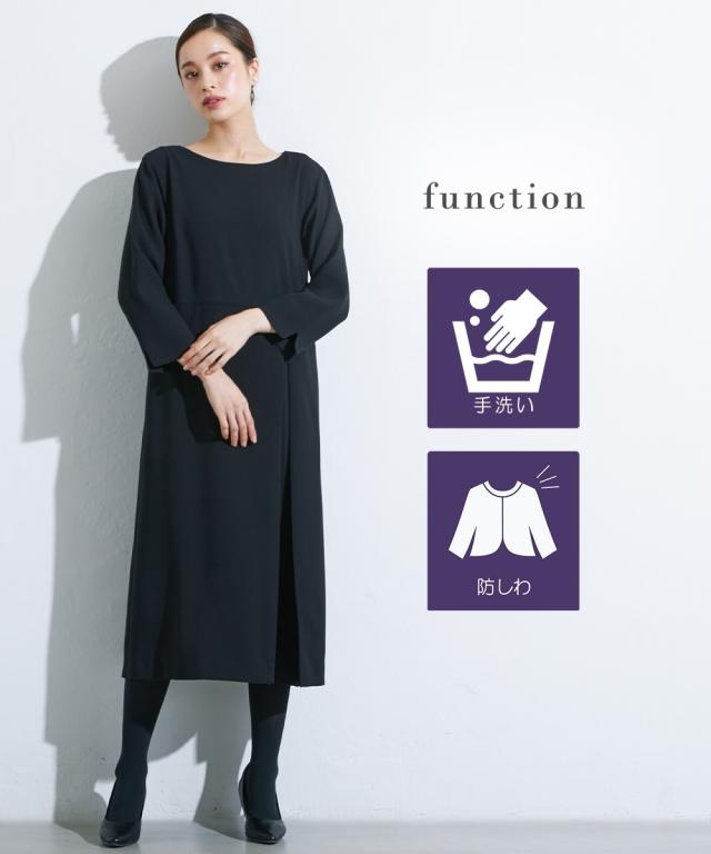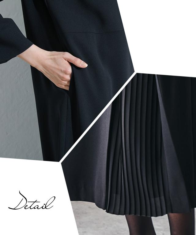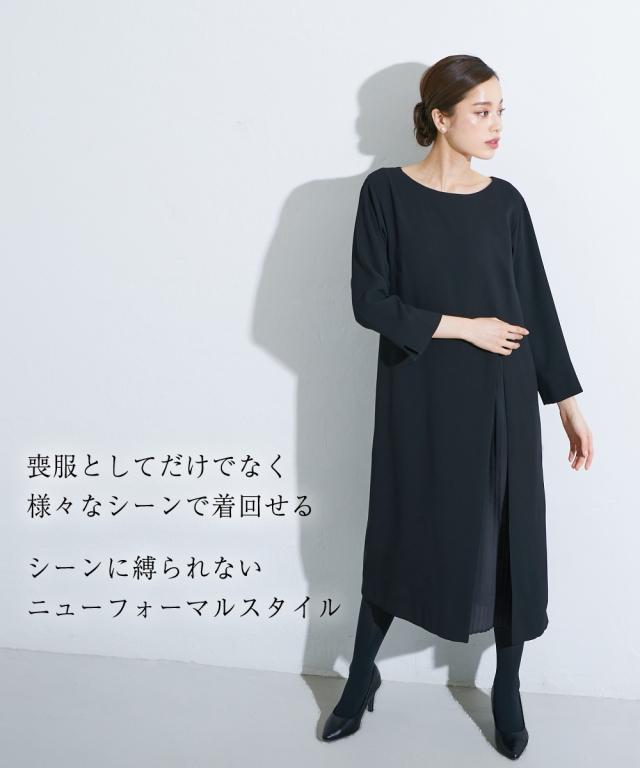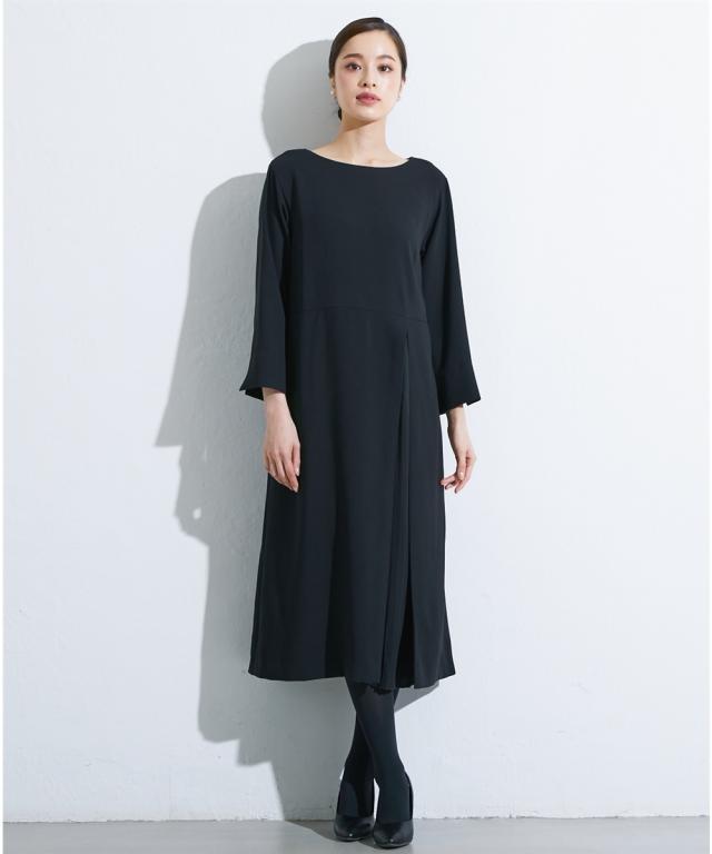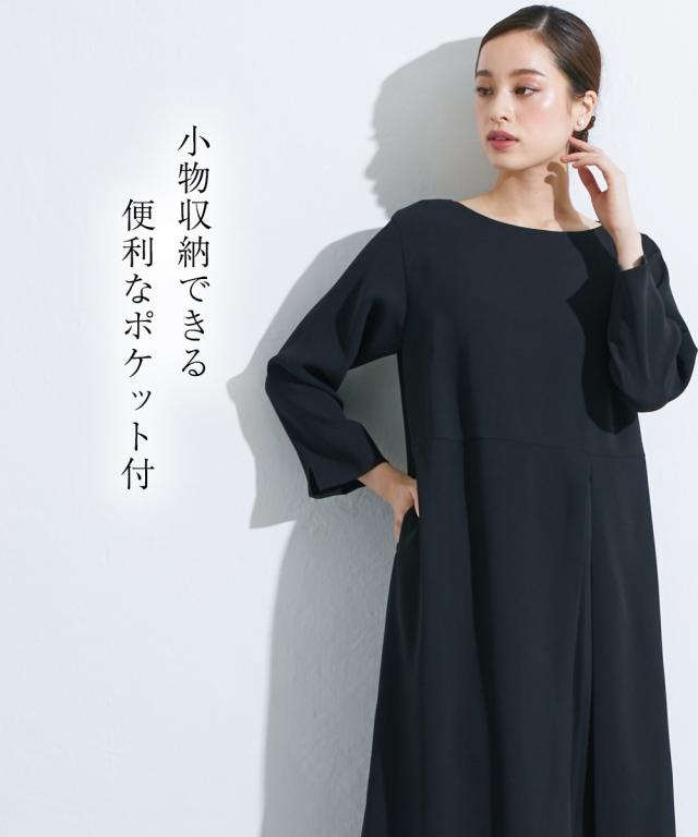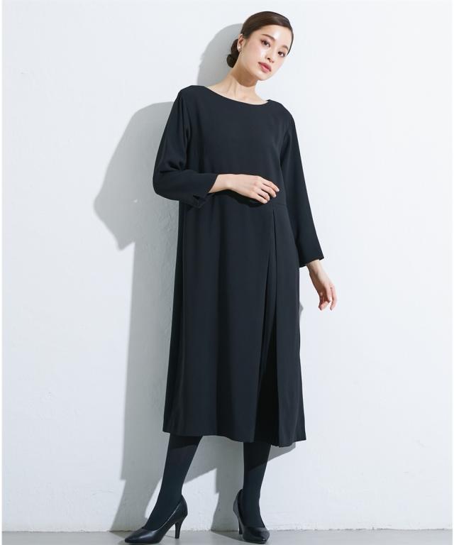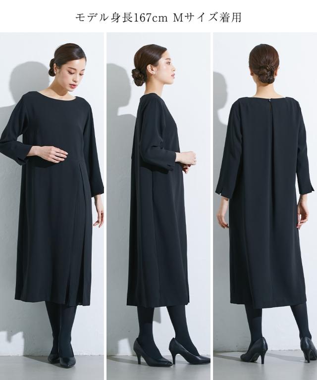 喪服 礼服 ブラックフォーマル ワンピース 大きいサイズ レディース Callarus 洗える防しわアシメ プリーツ 使い ロング丈 有 4L/5L/6L ニッセン nissen