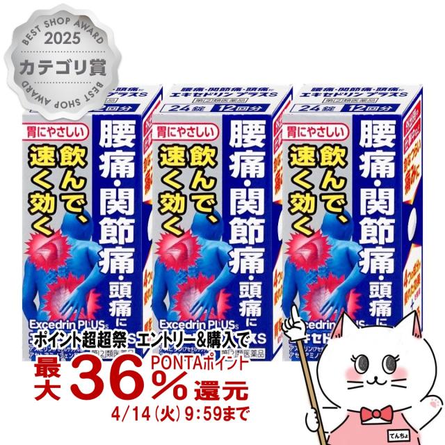 【超超祭 最大36%還元】【指定第2類医薬品】[セット]エキセドリンプラスS 24錠×3個(セルフメディケーション税制対象)[頭痛・痛み止め][メール便発送OK](6056474-set2)[ライオン]