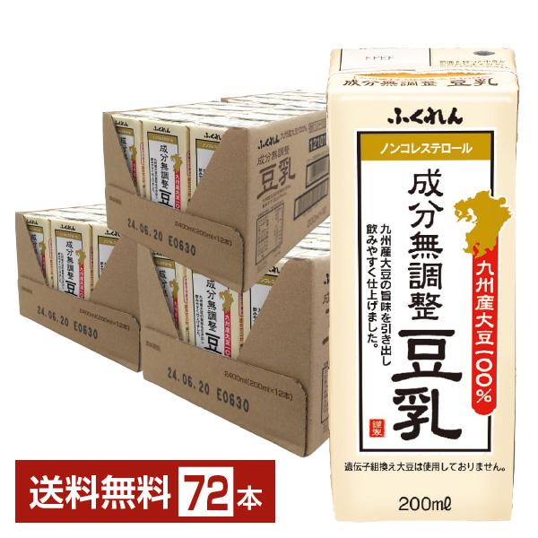 ふくれん 九州産大豆100% 成分無調整豆乳 200ml 紙パック 24本×3ケース(72本)送料無料
