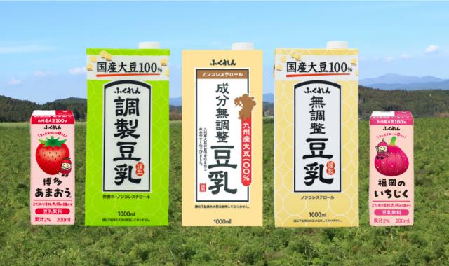 ふくれんの豆乳は、九州産大豆100%でつくる成分無調整豆乳から、コーヒーや抹茶、あまおう、いちじくを使った風味豊かな豆乳飲料まで、幅広いラインナップを取り揃えています。