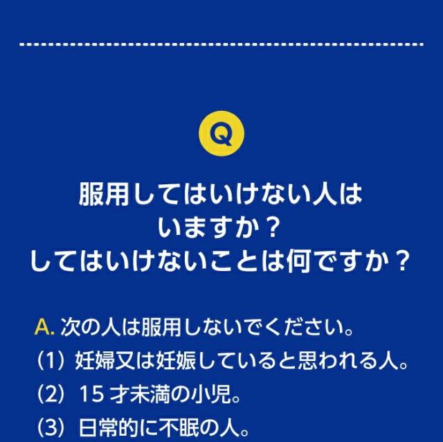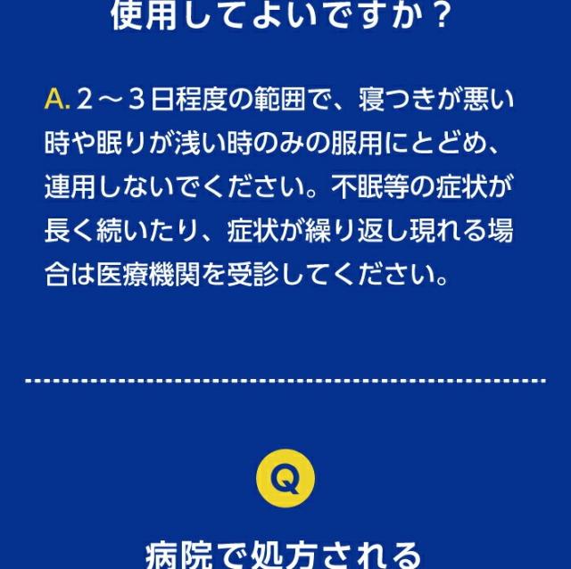 4.寝つきが悪い時や眠りが浅い時のみの服用にとどめ、連用しないでください。
