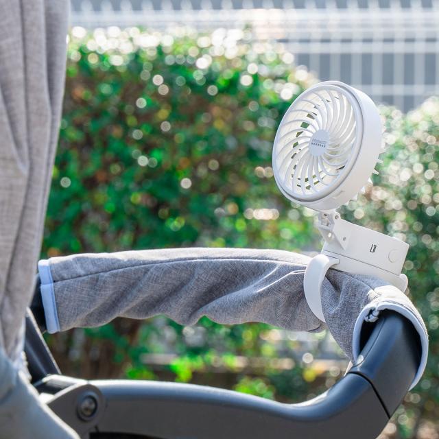“アタッチメントを変える”という新発想から生まれたハンディファン。本体はそのまま、付属をクリップ、ベルト、ストラップ、卓上…と変えることで、5通りの使い方ができます。日傘やベビーカーに取り付けて使うのもよし、デスクに置いて使うのもよし。場面や用途に応じてマルチに使える夏の必需品です。