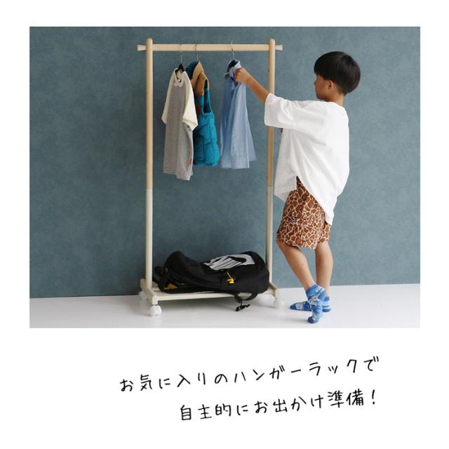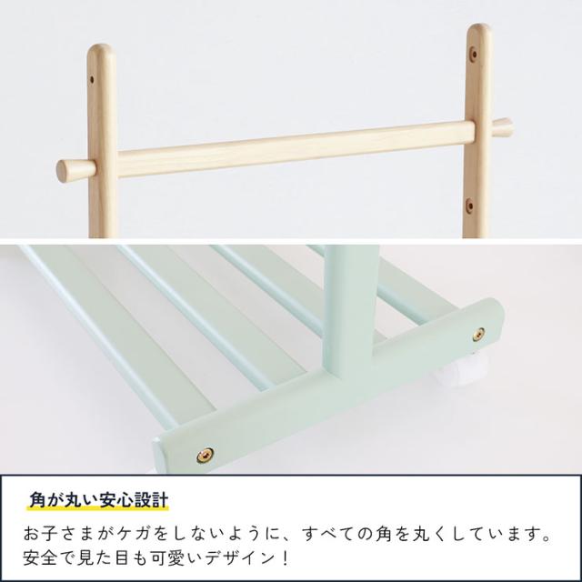 キッズハンガーラック mill 3色対応 ハンガー ハンガーラック キャスター付き 高さ調節 棚板 収納棚 子供用 コートかけ 洋服掛け 帽子掛け ランドセルラック 子供部屋 玄関 寝室 リビング 木製 おしゃれ