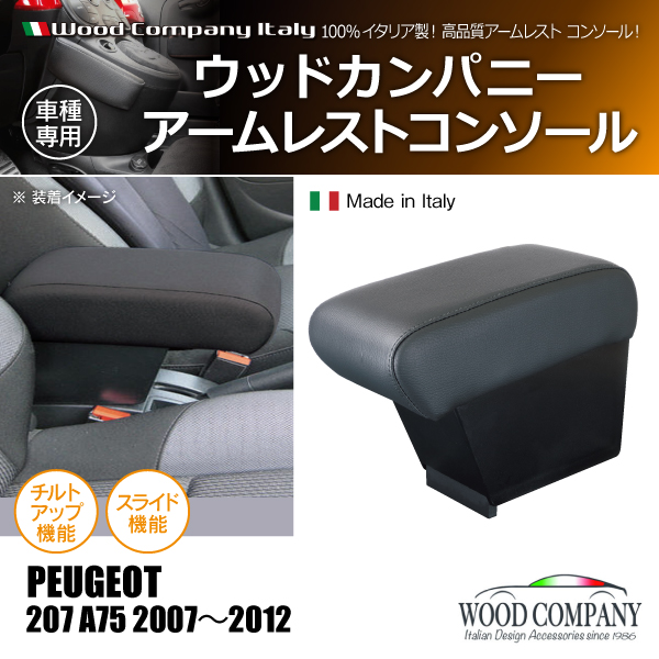 プジョー 207 A75 2007-2012 アームレスト コンソール ブラック/ブラック ステッチ 1p Wood Company ウッドカンパニー(商品コード:110006)