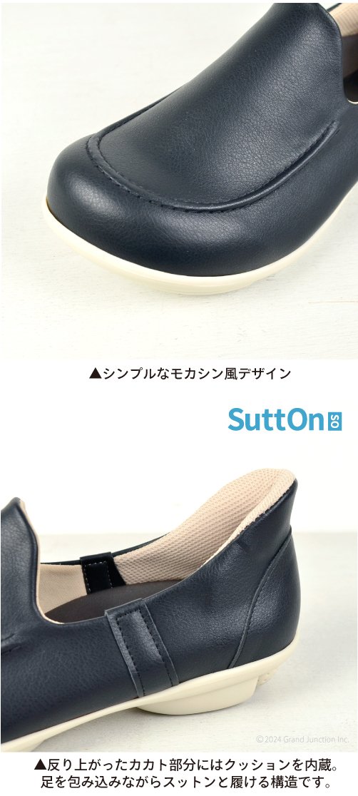 そして秒で履ける!SuttOn(スットオン)シリーズのアッパーデザインを採用、独自のかかと形状で、足入れがしやすいデザイン。手がふさがっていても、座れなくても、靴ベラが無くても、時間が無くても、『スットン』と履ける。履く手間「ゼロ」シューズです!シンプルなスリッポンタイプのシューズは脱ぎ履きがとにかく楽ちん!合皮使いでスポーティ感は抑え、カジュアルでありながらオシャレに履きこなせる一足です。お使いのシーンに合わせてオールブラックから鮮やかカラーまで選べるラインナップです。内布には抗菌防臭、制菌加工が施された素材を使用しています。