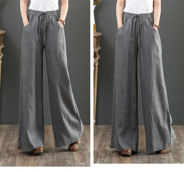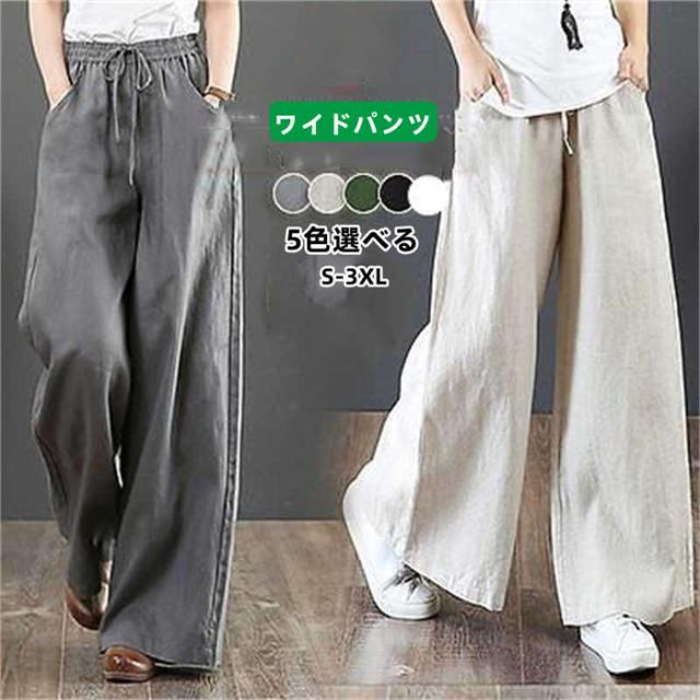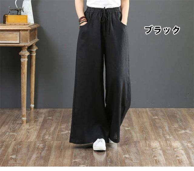 商品名:【短納期】ワイドパンツ レディース 綿麻ワイドパンツ ロング丈 パンツ 大きいサイズ 長ズボン ワイドパンツ ガウチョパンツ ボトムス ストレッチ ウエストゴム リネンパンツ 薄手 着痩せ 無地パンツ サマーズボン 体型カバー ゆったり 母の日 プレゼント