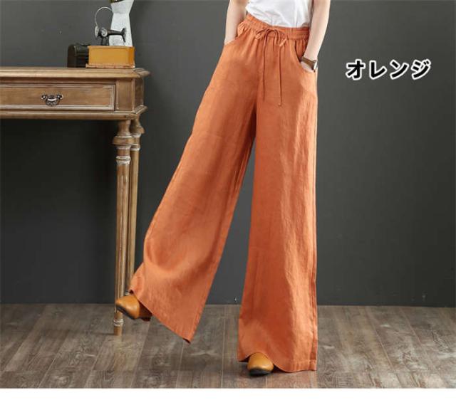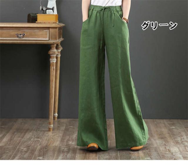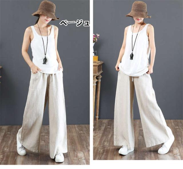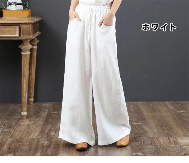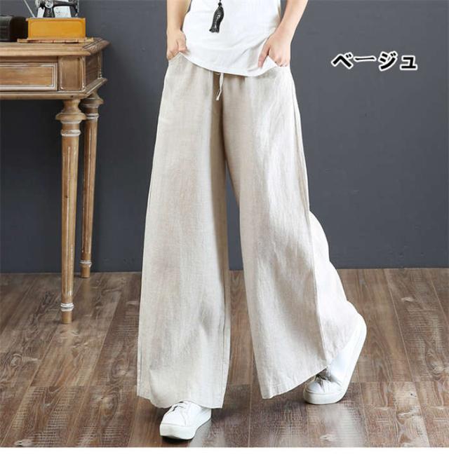 【短納期】ワイドパンツ レディース 綿麻ワイドパンツ ロング丈 パンツ 大きいサイズ 長ズボン ワイドパンツ ガウチョパンツ ボトムス