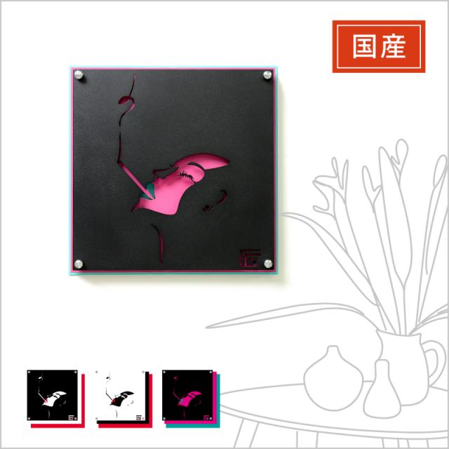 岐阜鉄の匠 【国産/日本製】 鉄脚 スチール アイアン ウォールデコ 壁飾り 壁掛けアート作品 Smoking Lady 3層構造 (黒/ピンク/ターコイズ) 撥水加工