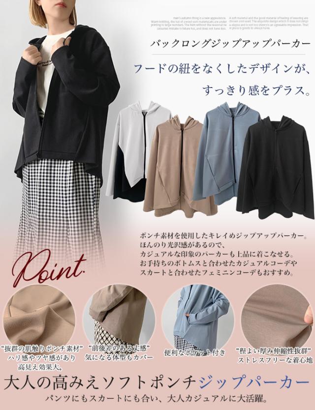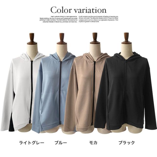 パーカー ジップパーカー ジップアップパーカー 羽織り ジャケット アウター スウェット 長袖 なめらか もっちり ソフトポンチ レディース トップス