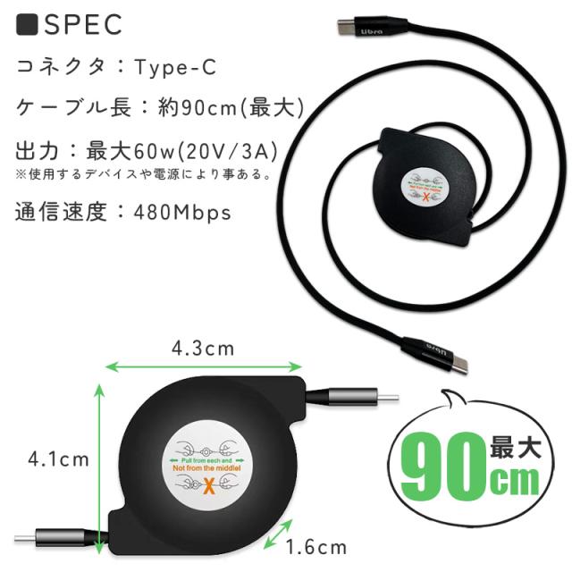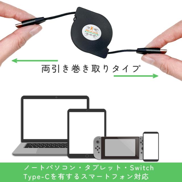 Type-C to Type-Cケーブル巻き取り式 60W対応 タイプC PD 充電ケーブル 充電器 コンパクト iPhone15対応 Cタイプ