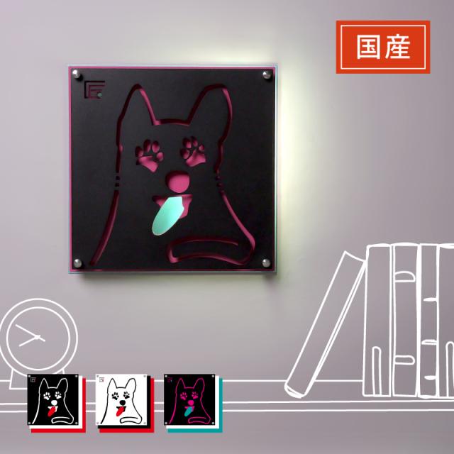 岐阜鉄の匠 【国産/日本製】 鉄脚 スチール アイアン ウォールデコ 壁飾り 壁掛けアート作品 子犬 3層構造 (黒/ピンク/ターコイズ) LED光源付 撥水加工