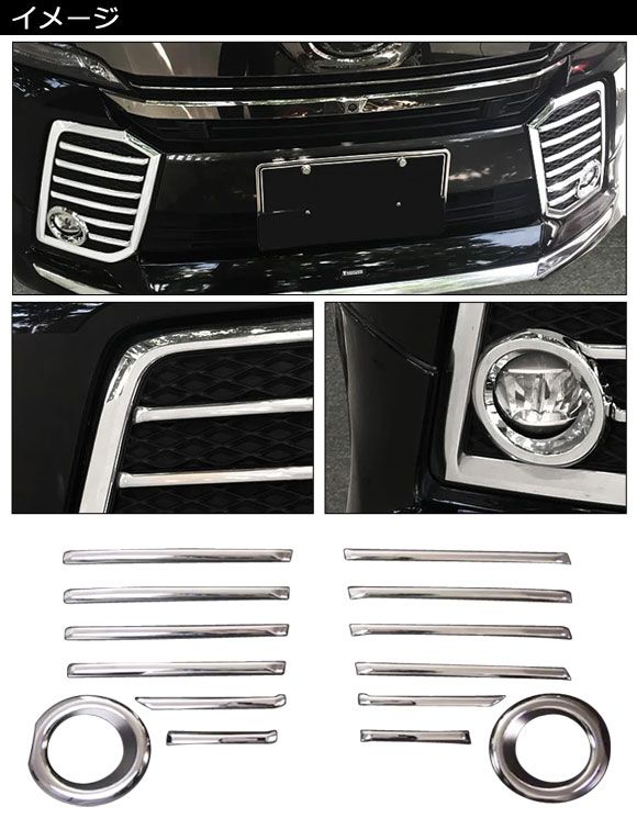フロントフォグガーニッシュ トヨタ ヴェルファイア 30系 前期 2015年01月〜2017年12月 鏡面シルバー ABS製 入数:1セット(14個) AP-FL401