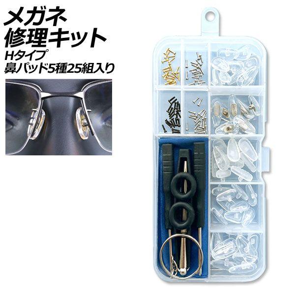 メガネ修理キット Hタイプ 鼻パッド5種25組入り ネジ式交換用 AP-UJ0974-H