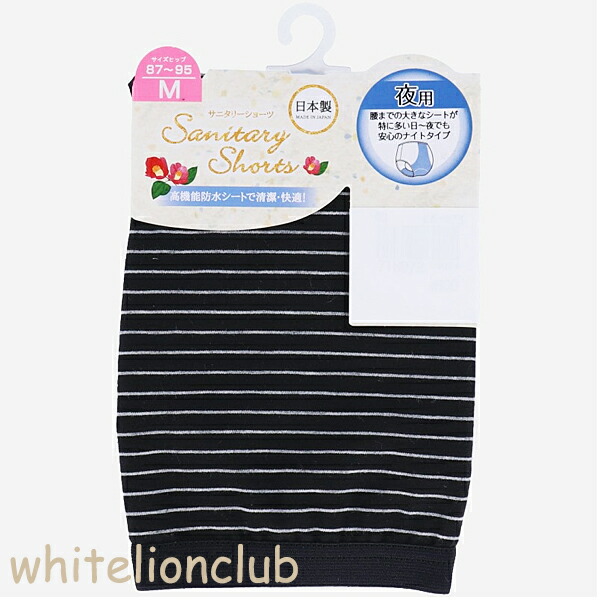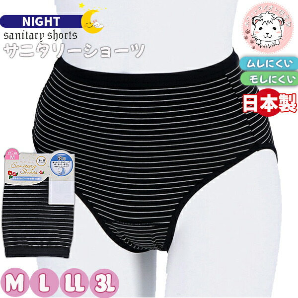 夜用 ボーダー柄 サニタリーショーツ 多い日 ナイト用 綿混 レディース 日本製 M/L/LL/3L | 生理ショーツ 生理パンツ 生理用ショーツ 生理 月経 かわいい