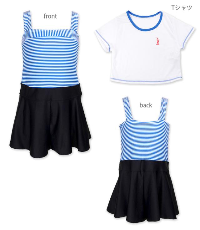 【メール便送料無料】EASTBOY ワンピーススクール水着セット キッズ ジュニア 女児 130 140 150 160 170 イーストボーイ 白 紺 青 No.sw3505