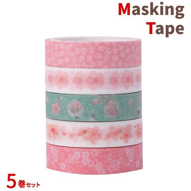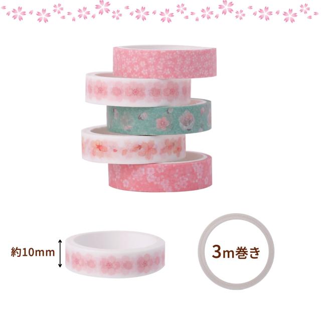 マスキングテープ 5巻セット マステ 桜 10mm×3m×5巻 桜 花びら 春 桜吹雪 可愛い かわいい 手帳 手紙 和紙 ラッピング 装飾 デコ 写真 プレゼント diy ハンドメイド デザイン カード 送料無料 yp