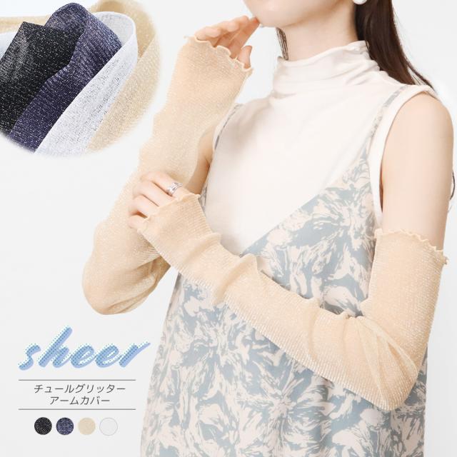 プラスするだけでいつものコーデが華やかになる チュールグリッターアームカバーです。