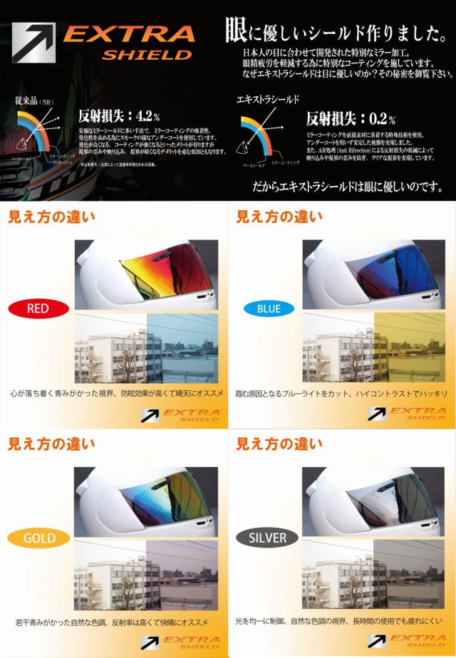 YAMASHIRO EXTRAシールド【VAS-A:TOUR CROSS V シリーズ適合】「視界」にフォーカスし、見やすさに徹底的にこだわった眼に優しい日本製のミラーシールド(エキストラシールド) /山城