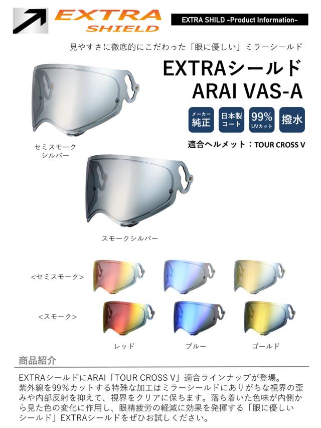 アライヘルメットの TOUR CROSS V シリーズに適合する【VAS-Aシールド】がEXTRAシールドに登場!
