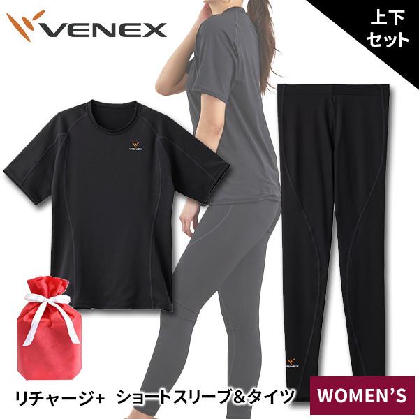 リチャージ+ ショートスリーブ タイツ 上下セット レディース ブラック リカバリーウェア VENEX
