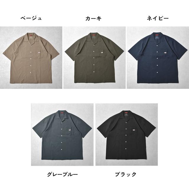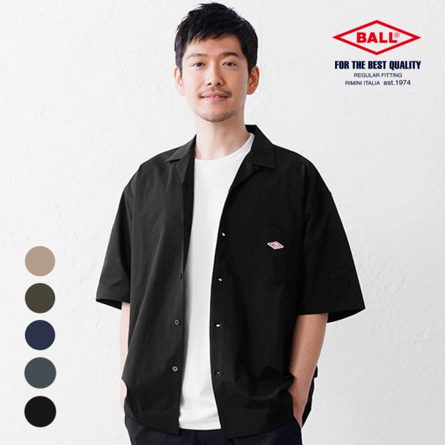 オープンカラーシャツ 半袖 メンズ ストレッチ 吸汗速乾 シャツ ドライ 伸縮 涼しい 軽い 無地 ロゴワッペン 胸ポケット カジュアル シンプル 夏 春 M L LL BALL 54506