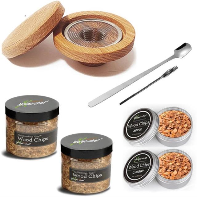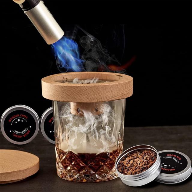 【差し替え可能な燻製器セット】このカクテルスモーカーは4種のフレーバーセット100%天然木チップク,リーニングブラシ1つ、スプーン1つ、フィルター2つ、氷石4つ、トーチ(ブタンなし)、人工香料成分を含まず、デザインと包装が美しいです。