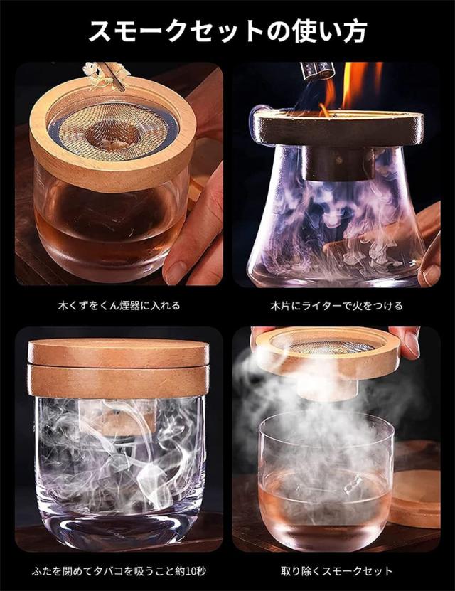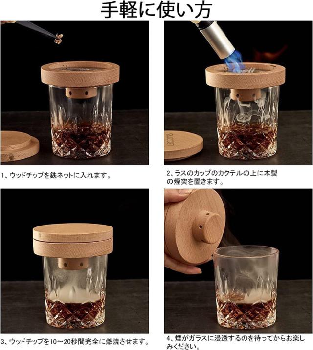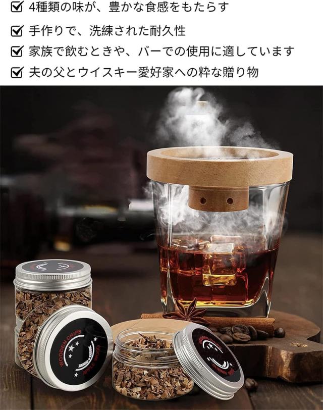 【即納】カクテル スモーカー 燻製器 家庭用 スモーク スモークマシン スモーカー グラス トップ 燻製キット カクテルスモーカーキット 4種類の木製チップ付き 木製カクテルスモーカーキット ウィスキー スモークトップ スプーン付き 贈り物