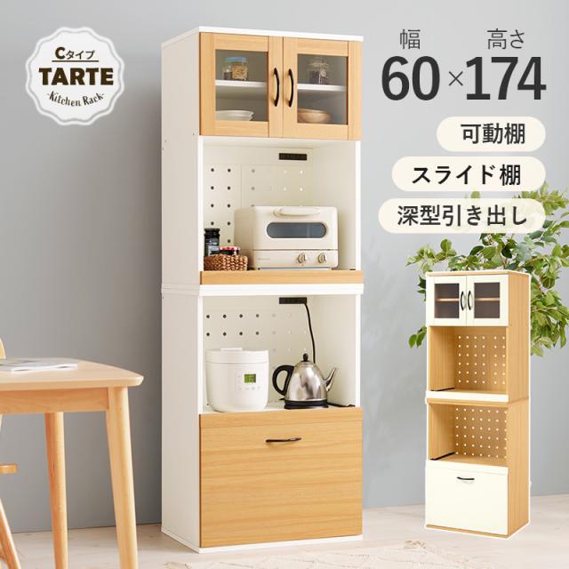 キッチンボード 60cm キッチンラック スリム 食器棚 収納 引き出し キッチン収納棚 扉付き カップボード おしゃれ スライド レンジ台 タルトC 北欧 木目 ナチュラル カントリー調 ダイニングボード 台所