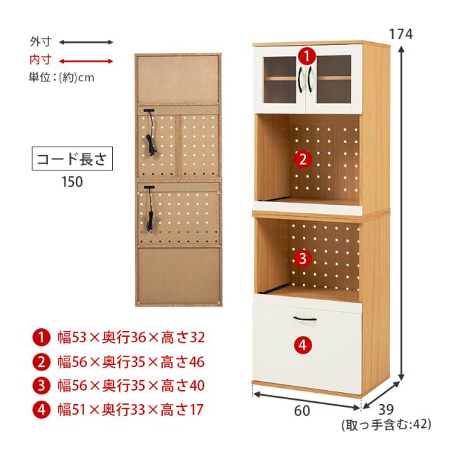 【商品サイズ(約)】幅60×奥行42×高さ174cm