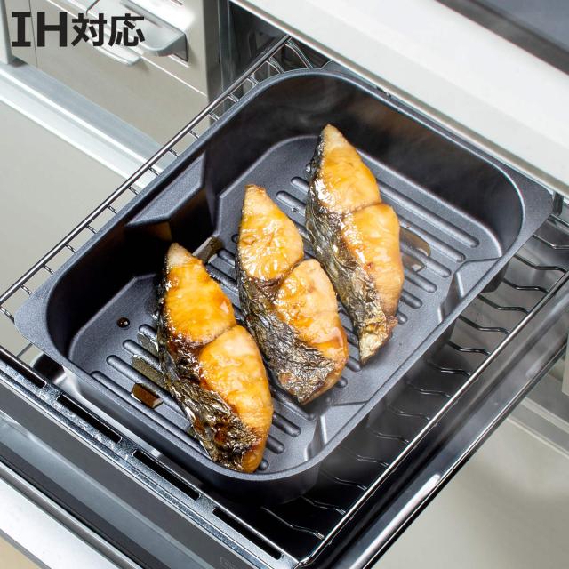 魚焼きグリルを活用して調理ができるグリルプレート・深型です。お掃除が面倒で敬遠されがちな魚焼きグリルも、グリルを汚すことなく調理ができます。魚焼きグリルで調理している間に、空いたコンロでは他の調理が同時に進められるので時短調理になります。