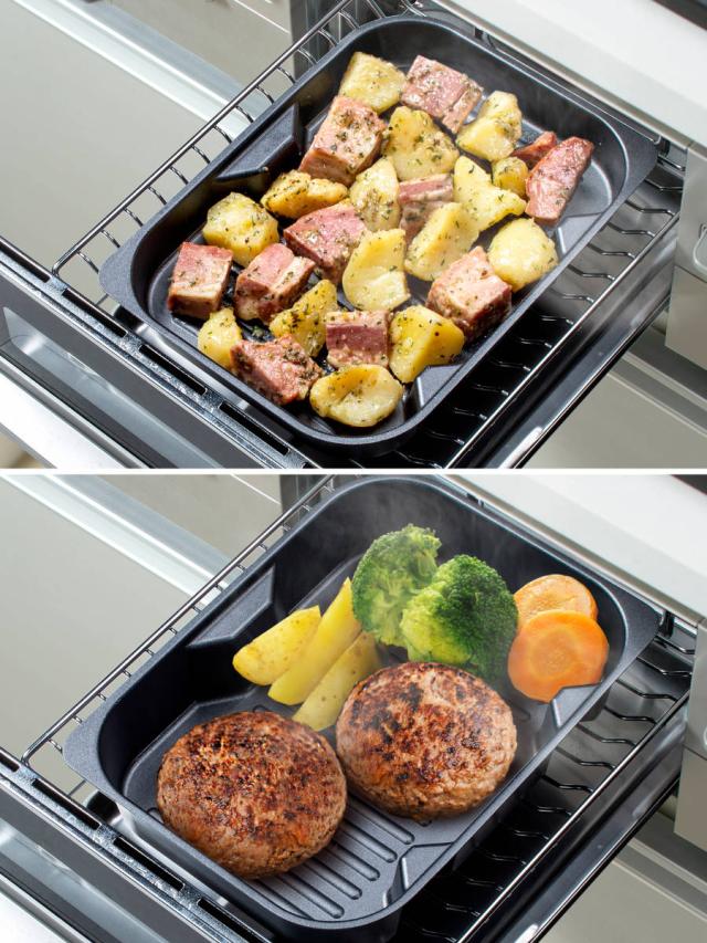 焼き面スペースが広いので、惣菜の温め直し、餅焼、トーストなど様々な調理に活躍します。プレートを活用した8種のレシピ付きで、料理のレパートリーも広がります。