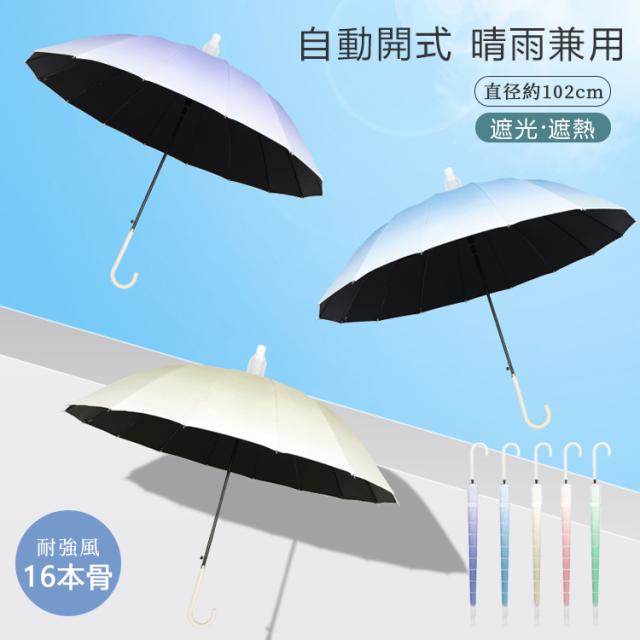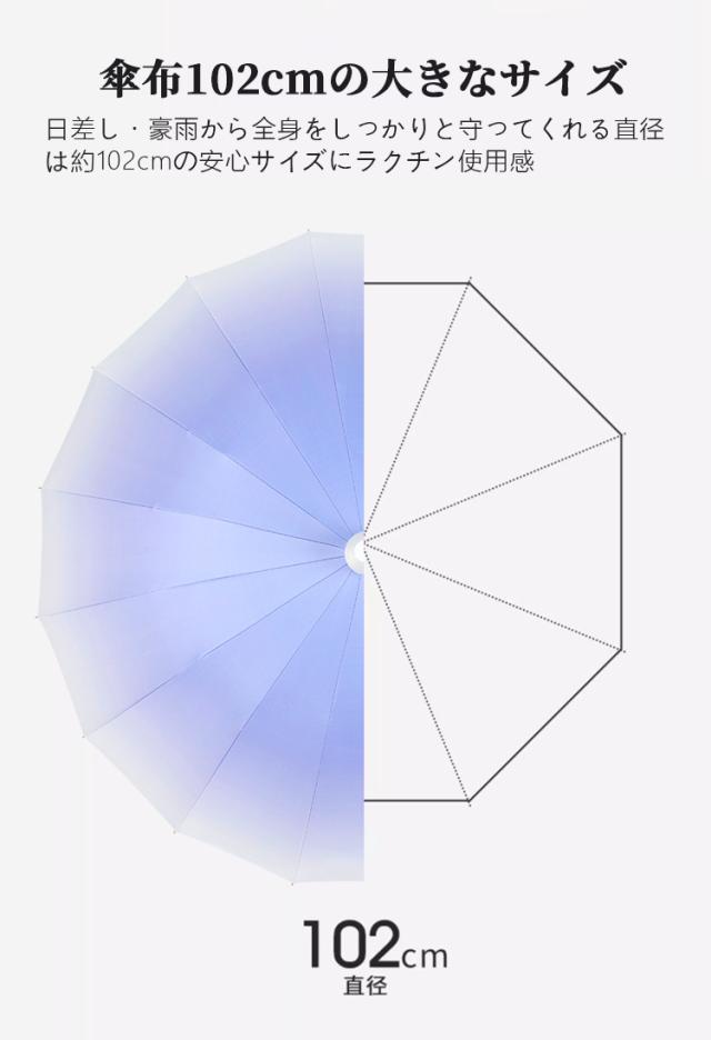 長傘 晴雨兼用 ワンタッチオープン 直径102cm 傘カバー付き 遮光 遮熱 耐強風 16本骨 傘 撥水加工 母の日 レディース メンズ 男女兼用 高密度生地 熱中症対策 UVカット 梅雨対策 通勤 通学 外出 晴傘 雨傘 かさ カサ おしゃれ