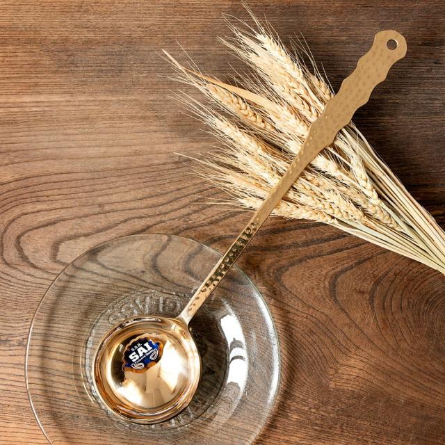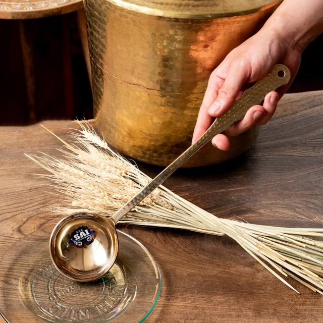 高級感のある槌目模様インドのブラスレードル ラドル 約35cm / インド、調理器具、フライ返し、おたま、スプーン、真鍮、 インド アジアの食材 【インドとアジアン食品・食材