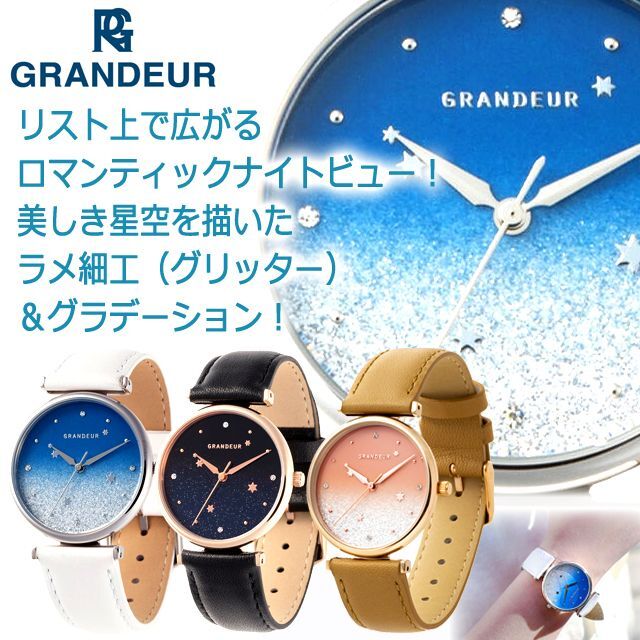 GRANDEUR[グランドール]レディースグリッターウォッチ (優雅 ノスタルジック ドラマティック インデックス センターラグ)