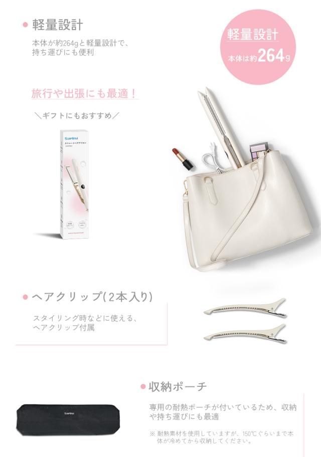 付属品:ヘアークリップ(2個)、収納ポーチ(1個)、日本語取扱説明書(1部)