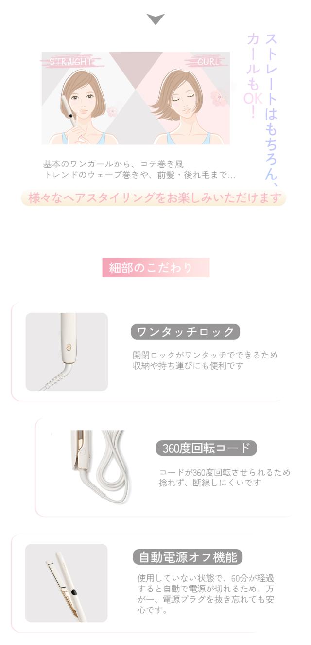 - 簡単にストレート、カールが作れてすごく便利でした!!髪の毛もあんまり傷まなそうなのが良かったです。
