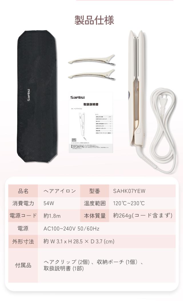 Sarlisiヘアアイロンは、PSE認証済みで、しっかりと検品を行っており、品質には万全を尽くしております。さらに、保証期間が購入日から1年間付いているため、万が一、初期不良や製品不良による不具合が発生した場合でも、保証期間内であれば無償にて対応させていただきます。