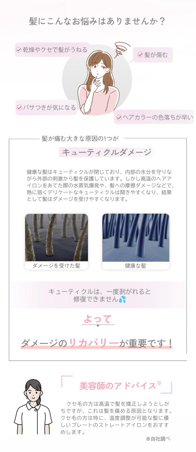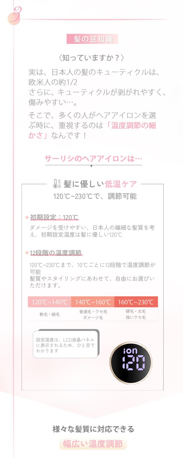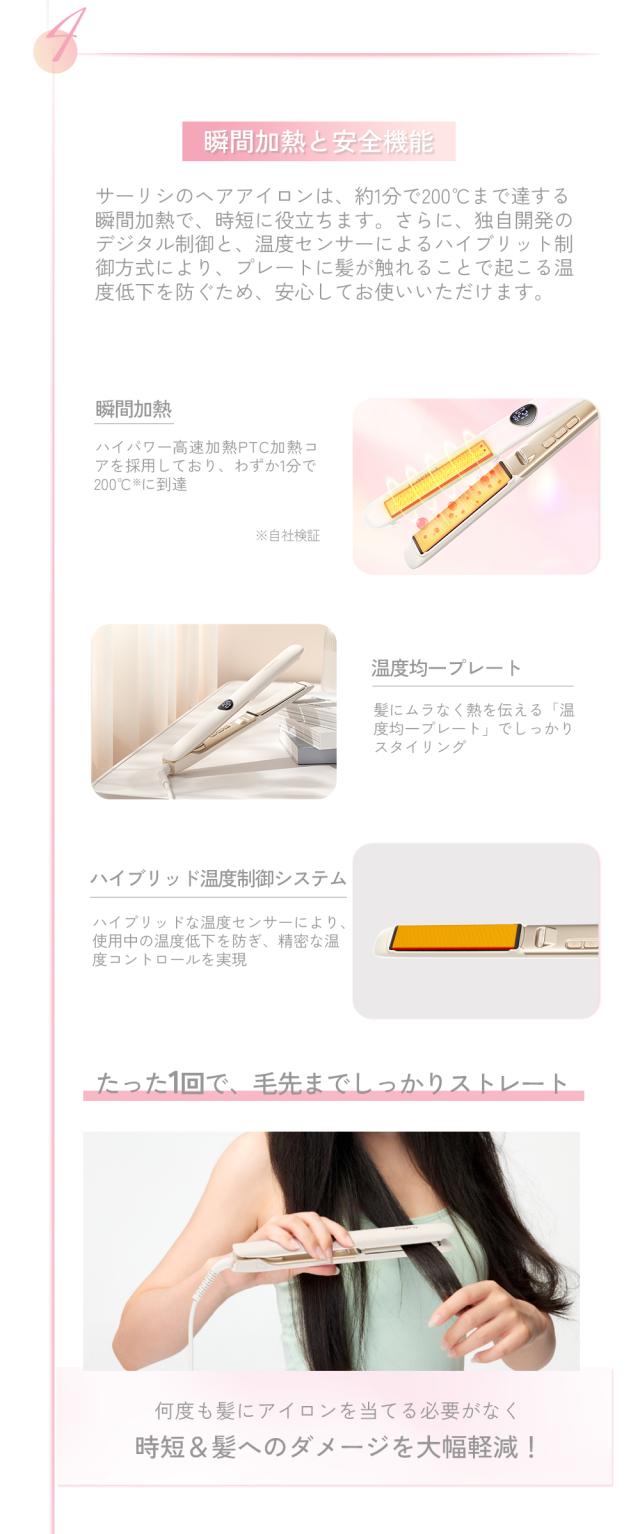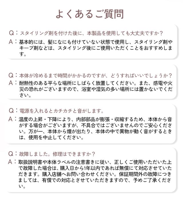- 温度が直ぐに上がるので、忙しい朝にも重宝しています。髪に負担がないので、有り難いです。