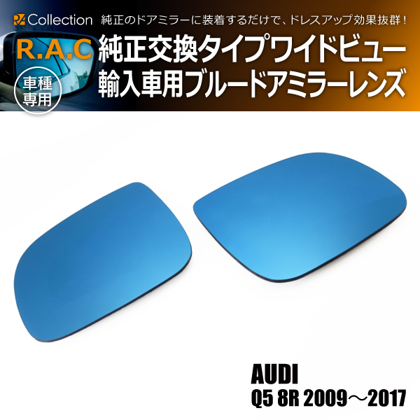 アウディ Q7 4L 2009年〜2012年 R.A.C ワイドビュー ブルー ドアミラー レンズ 純正交換タイプ(商品コード:220011)